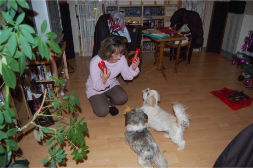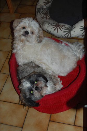 Eva: " Tout d’abord tous mes vœux à toutes et tous – beaucoup de bonheur, de bonne nouvelles, de santé et tout ce qui va avec.... Voici quelques nouvelles de notre petite adoptée, dans son quotidien : Appy et elle sont dorénavant inséparables : en alternance : jeux, câlins (ils se font des bisous à longueur de temps...), re jeux, re câlins, repos, repas, et on recommence.... "
