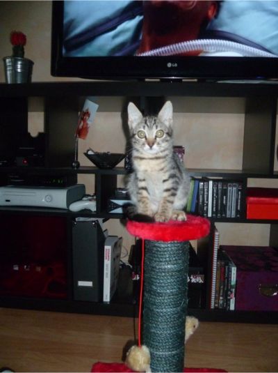 Gribouille, minette tigré d'un an est arrivée samedi dans notre nouvelle famille d'accueil: Karine, merci et bienvenue!