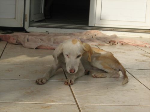 Ils sont bien maigres et n'ont presque pas de poils! Ils sont à requinquer avant adoption, sous traitement pour prévenir les maladies tropicales et soigner leur peau. Sur le site où ils étaient, les 3 autres chiots et tous les adultes ont disparu du jour au lendemain.