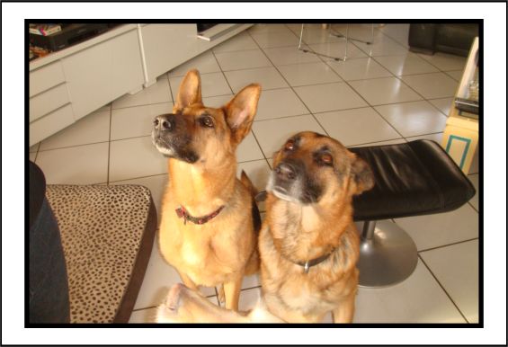 Je vous joins quelques petites photos de notre joyeux petit couple, ainsi qu'une avec Callie lors de ses petites vacances mensuelles chez nous !