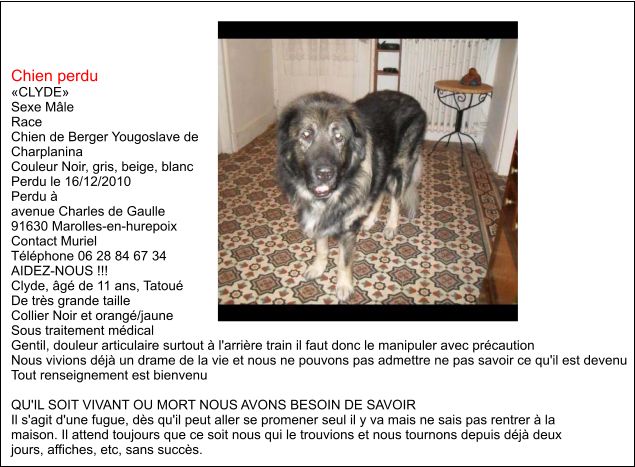 Je vous envoie la photo que vous aviez publiée sur votre site ainsi que deux photos très récentes d'elle.