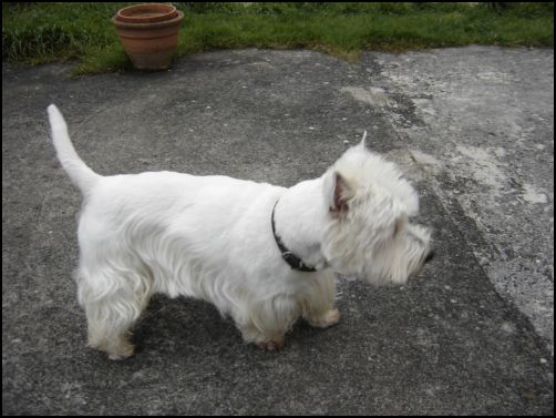 Toy, west Island Terrier de bientôt 7 ans cherche une nouvelle famille après la décès de sa maîtresse.Il adore les enfants, est très joueur, s'entend avec les chiennes. Il ne connait pas les chats et semble peu aprécier les chiens mâles.